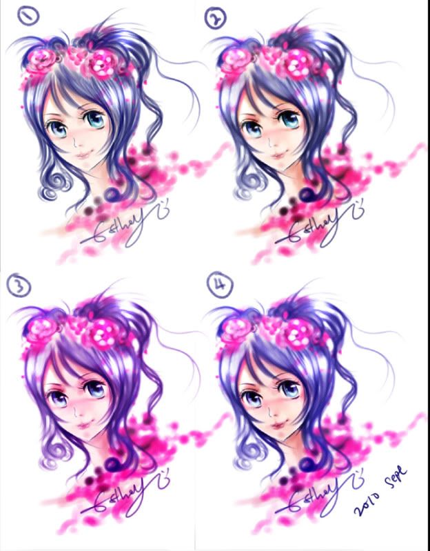4)稿3 重叠 稿2的layer, 清除稿2的一切除了肤色,select 稿3和稿2 的layer merge(mac:comm +E)ctr+E 起,调色捷径 (mac:comm +B)ctr+B CMYK --> C=30!拉稿1,清除稿1的一切除了眼睛,稿4搞定! |