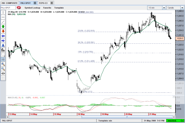 这两个星期的trend好象怪怪的突破向上或下不跟着向上或下反而倒反!但以这几天15MA理论就有很大的效用,下一个支撑在1025.5,MACD破0以下.... |