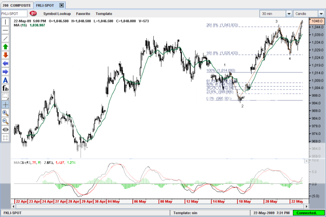 今早小跳空向下支撑在1025.5反弹向上,这个星期走的trend很符合波浪,今天尾市破1044目标价下星期很大可能走第五浪目 ...
