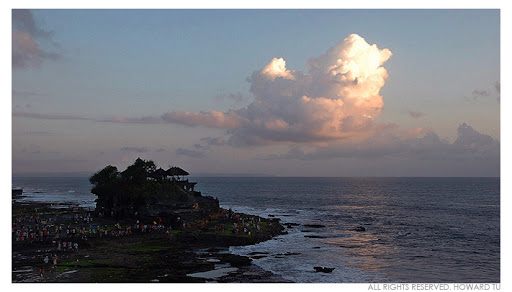 商店的盡頭,是一個花園,我嗅到海獨特的氣味,知道海就在前方。隱約看到海神廟就在左方。我壓抑自己盡量不要投往左方看,隨大部分人往右左,走上另一個懸崖。那裏有無論觀賞海神廟或日落最佳的位置。看似遠,也不知道是否心情愉悅,很快就到了。在這裡人潮也不少,我佔了個位置,將眼睛用力打開,深呼吸將身體每一個感覺和細胞張開,去感受這個美景。