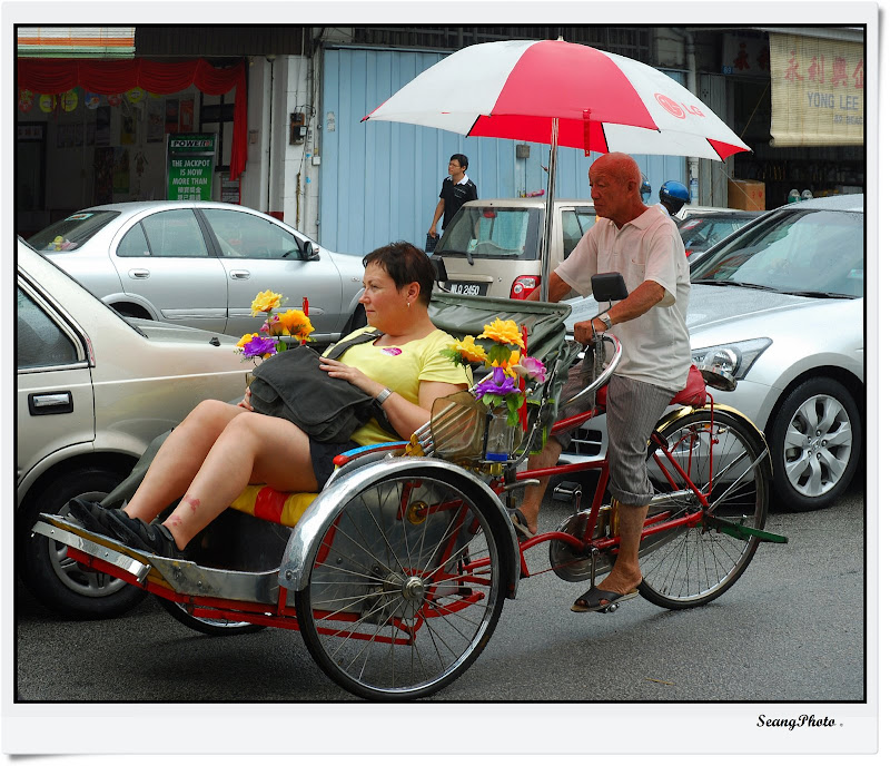 游槟城,我们专业的北马霸帝旅行社当然会以这种最有feel的方式来让各位慢慢的畅游。(T&C:平时用一粒两粒weight的坐前面;平时用三粒四粒weight或扛石头的负责踩三轮车)