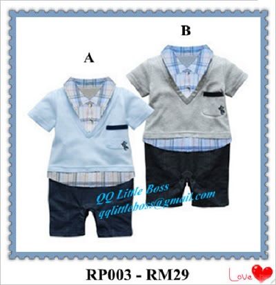 1)宝宝翻领格子哈衣 RP003(B) 灰色 90码 - RM29 (灰色的是90码的哦!)
