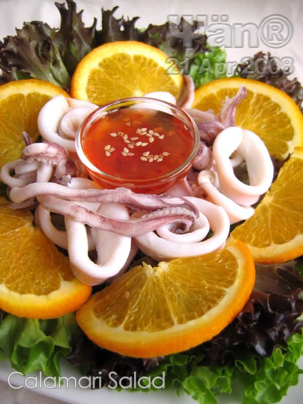 *烧开一锅水, 放几片姜,把花枝汤几分钟 (不能煮太久,不然会变chewing gum)