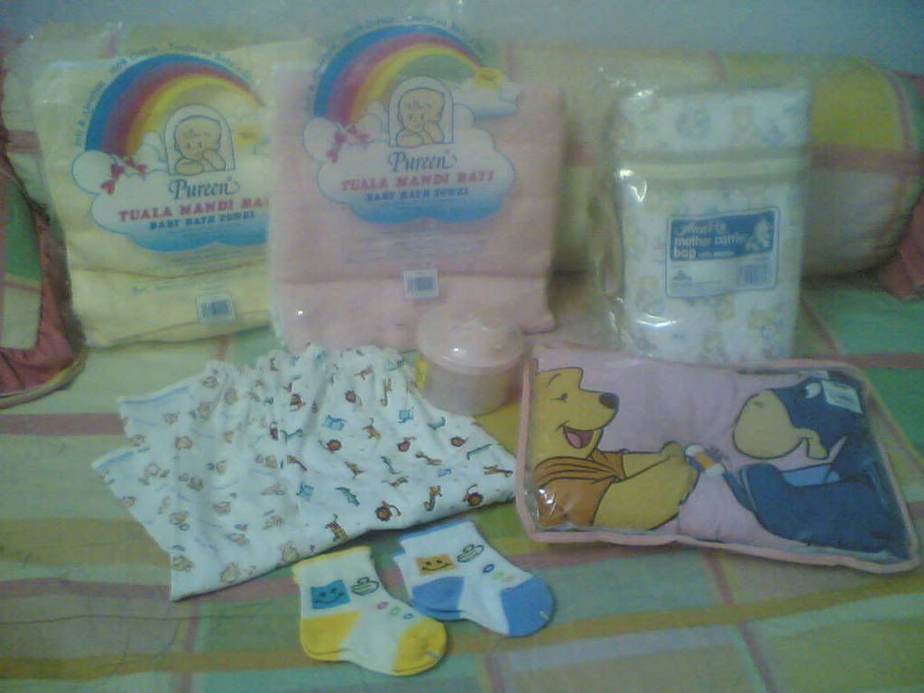 bb毛巾,保温瓶+beg , 2件小裤裤,奶粉分格盒,有洞洞的枕头