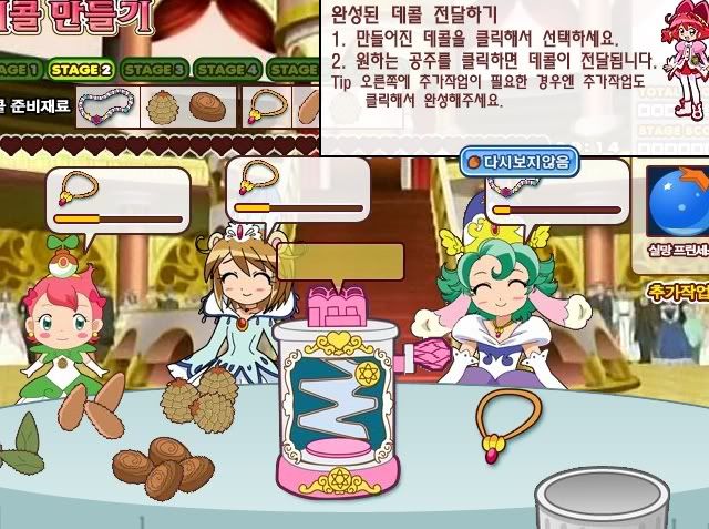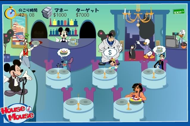 玩法:有人要进来时按椅子安排座位。他要什么食物,米尼那迴转餐台上都有,按食物,再按盘子客人就可以吃了。如果有人头上有$就赶快把他按下去他就会付钱了! 如果按得慢了跑掉就收不到钱。