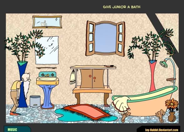 你的任务就是利用浴室里各种物品让脏脏的老爷爷乖乖走到浴盆里洗澡!