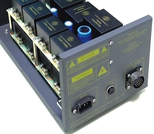 ●电源分体设计,电源盒中总共有16个密封的变压器,其中六个是滤波用的扼流圈,Counterpoint回到最传统、最有效却也成本最高的电源设计,看到这么庞大的变压器阵容恐怕又是世界第一。我猜想会用这么多变压器,机箱中还有多组稳压,除了拾音、伺服线路、机械、显示、数码输出、解码器和模拟放大都分开供电外,左右声道可能还是独立的。