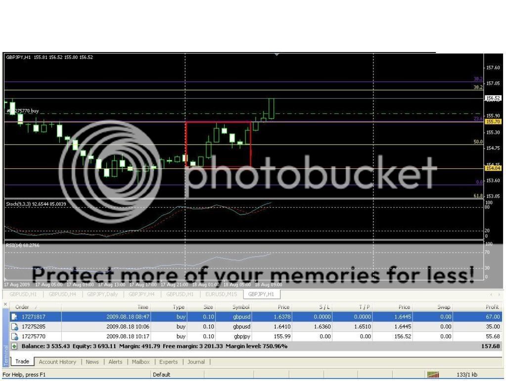 Sell GBP 。。。。。1。5685。。。。。目标100点。。觉得今天冲太快了。。会回落。。。。。。同一刻时间Buy Eur Vs Jp。。目标150点。和 Eur Vs GBP。。目标30点。。形成对冲。。。。原因是这几天EuR比较强势。。。。。如果日元起。。。GBP会跌的快过。。Eur。。。反过来如果日币跌。。Eur会有较大的空间升。。所以止损就不设立了。。。  |