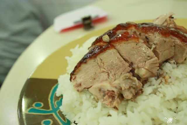 途中,我们经过《陈光记烧腊饭店》,两个人就点了一人一碟鸭饭。饭淋了些黑胡椒, 鸭肉的皮很薄,很脆!肉质很多,但是,肉有些难咬,吃得我嘴巴很累。