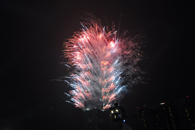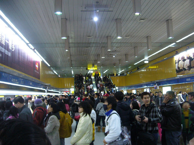 看了烟花我们就落跑了,因为之前看游记看到大大们写散场时人潮挤爆捷运的恐怖,我们也不想经历这些,哪里知道真的太天真了,哈哈,捷运站早已挤满了人 好像逃难那样