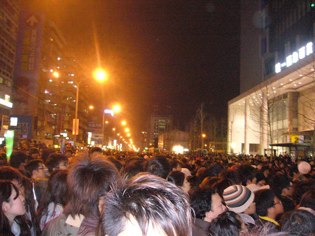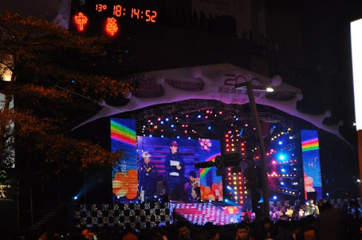 我们又走回跨年晚会那边,人已经很多了,一重一重的围着舞台