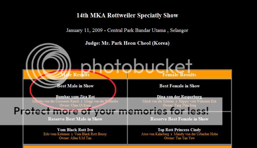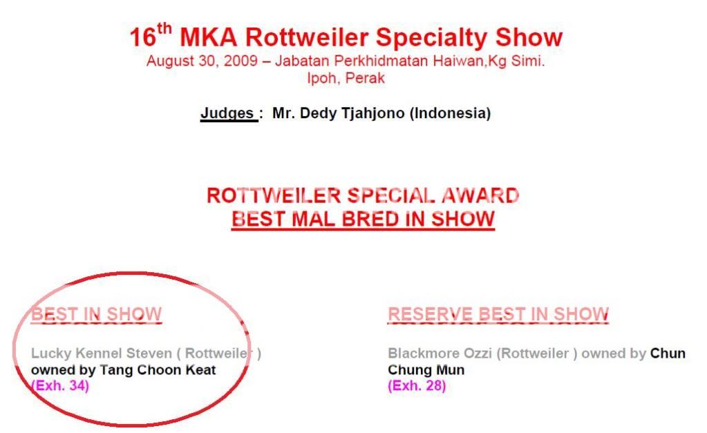 你相信他吗?连爸爸的资料都是 “老作” 的 你没有看见第十六届的 BIS 是 Mr Tang 的 Lucky Kennel Steven(Local Bred)... 如果是 Mr Chan 的 Bumbar V Zita Rot 的话, 那样他应该很 “自豪” 的把爸爸的名字写出来 ... 再说, 如果小狗真的是参赛水准, 为什么还要断尾?还有, 如果妈妈真的是有水准的话, 为什么没有妈妈的照片? 一般人都会以为爸爸很重要, 但是其实孩子一般都是会长的比较项妈妈, 母犬在繁殖的地位是非常的重要. 我们可以参考以下文章: