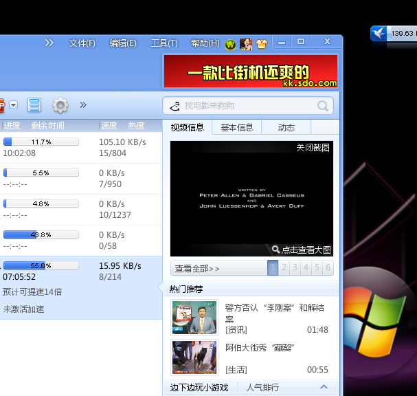 迅雷BT超级慢都是60kb/s一下,有时10kb/s。