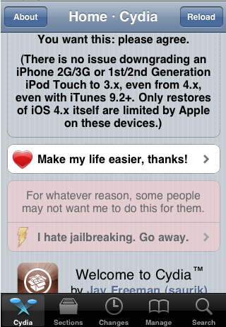 大大没有错,我就是这样成功越狱 不过,开机时白苹果变成了白骷髅(绿毒icon) D世纪(DZEN) 发表于 6-2-2011 12:36 PM