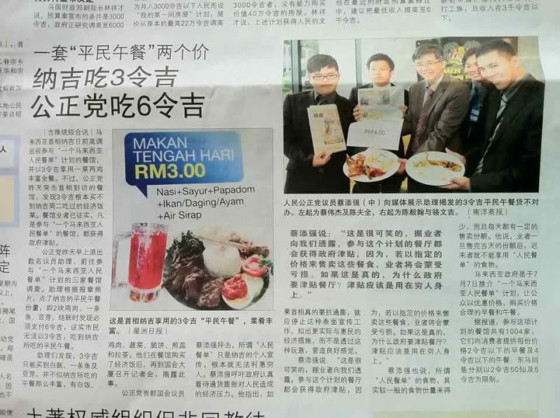 你有来西马吃过人民午餐?你有看到公正党去同一间店吃的价钱吗?是RM3?