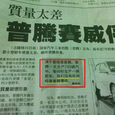 有问题的贴就有p1的出现,不是我们无知是P1的问题,身为国产车没有让我们没有因为买国产车而感到光荣也是P1的问题,P1也可以做好的车给好的quality卖贵的价钱可是这样的话国人还是会把钱花在买外国车这也是P1的问题,所以P1走经济路线给烂quality给“便宜”的价钱(在马来西亚勉强还成立,在其他国家有的卖比我们这里便宜)让人觉得它很烂都是P1的问题,如果这些都不是P1的问题,我承认我无知~ |