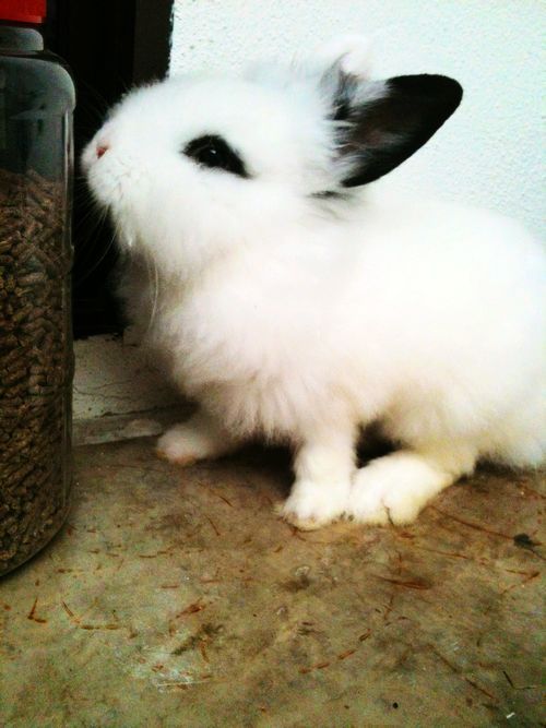 你那只黑耳朵,白色毛的兔子和我家的好像哦~