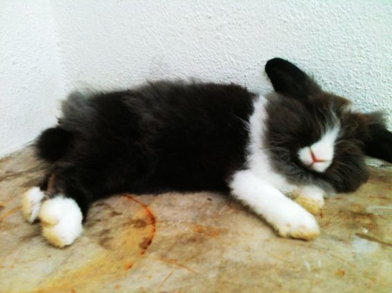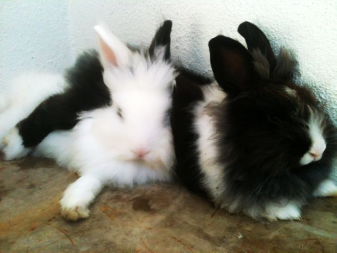 你家兔子真可爱哦。。跟我家兔子一样。。也是黑白配的。。哈哈