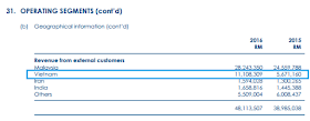 众所周知,越南现在是东南亚发展最快的国家之一。因此对分继电器以及电力产品的需求是与日俱增的,越南已经成为了 MIKROMB第二大的市场,营业额从FY15的RM5.67 mil上涨到FY16的RM11.11 , 进步了96%。伊郎以及印度等国家的营业额也成长了15 – 25%不等。公司在Annual Report中也提到会继续开拓东南亚的市场,展望未来会继续为公司带来更多的营业额以及盈利。
