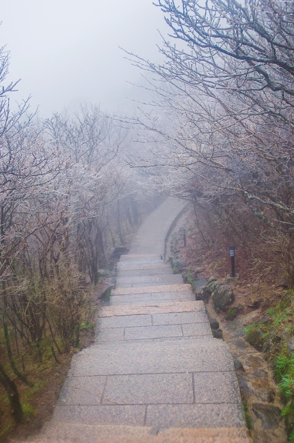 这时才有一个回头走的游客告诉我们上面的路很多都结冰了。