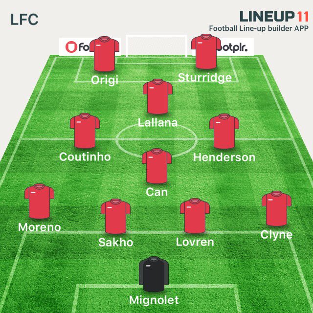 利物浦首发(4231):米尼奥莱/克莱因、洛夫伦、萨科、弗拉纳甘/亨德森、埃姆雷-詹/库蒂尼奥、拉拉纳、米尔纳/斯图里奇