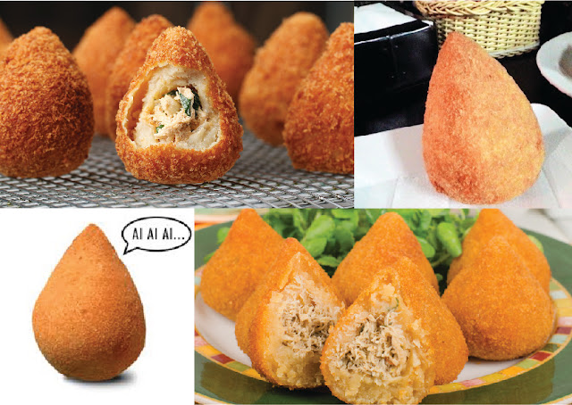 Coxinha 水滴形炸雞包,外形相當可愛的小吃。 Coxinha在葡萄牙語的意思是“小雞腿”, 故事是這樣的-古時有一個偏食的小孩,每天只愛吃雞腿,其它部位都不看一眼,日復一日, 終於廚房的雞腿吃到缺貨了,廚子急中生智,把雞胸肉填進麵粉團裡揉成雞腿的形狀, 再油炸至黃金色,成功蒙混過關。聽完這勵志故事, 聰明如你一定洞悉到敢如此任性的小孩一定不是一般蟻民,沒錯!他正是堂堂王子。 湊巧當時的Teresa Cristina女皇拜訪,一吃之下為之驚艷,這可愛的“小雞腿”才得以流芳百世。
