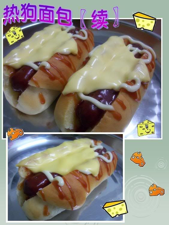 5。) 预热烤箱 170度, 将面包扫上一层鲜奶,然后烤 20分钟.。。。是上下火吗?(我妹妹用上下火。。。不到十五分钟。。。焦了!) |