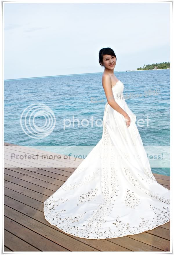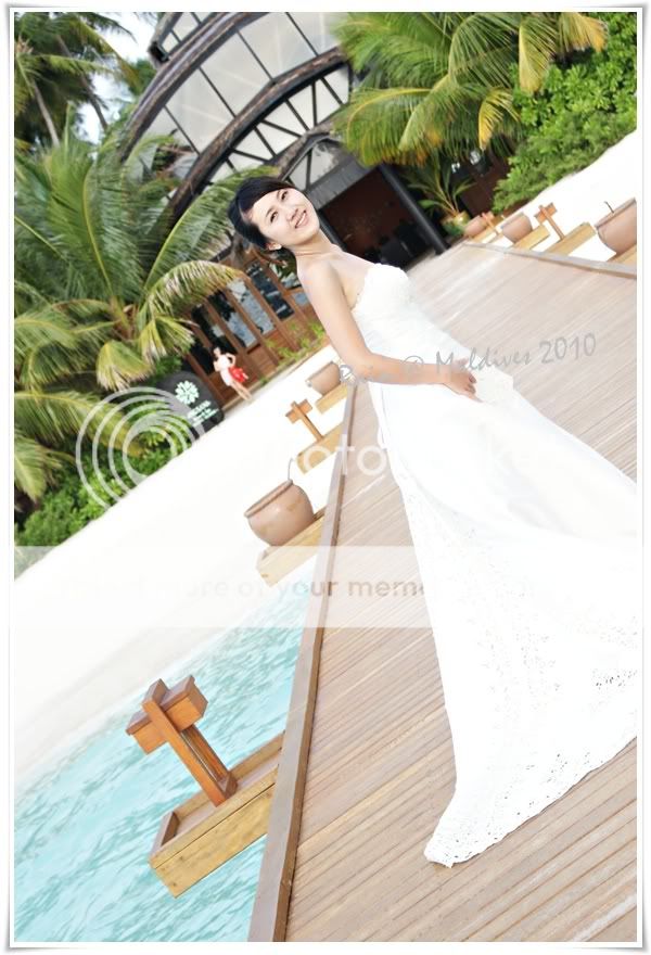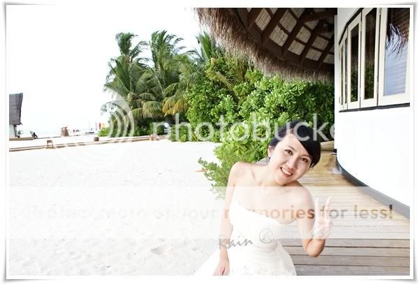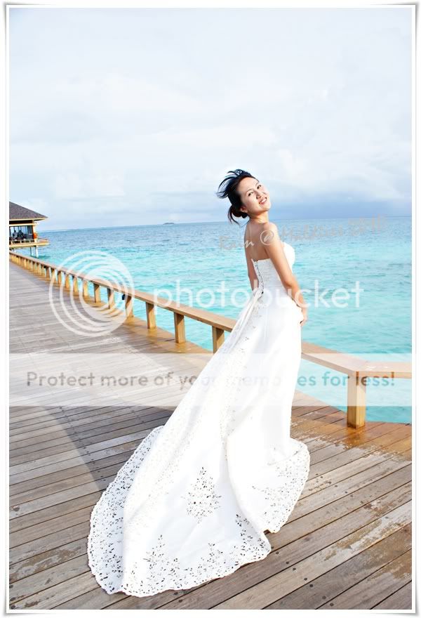 有看过我婚嫁那里的帖,一定知道我在台湾派的婚纱照理的沙滩系列是少得可怜,因为拍得不是很理想,所以我很坚持的一定要代婚纱来Maldives得沙摊拍的够够的~~