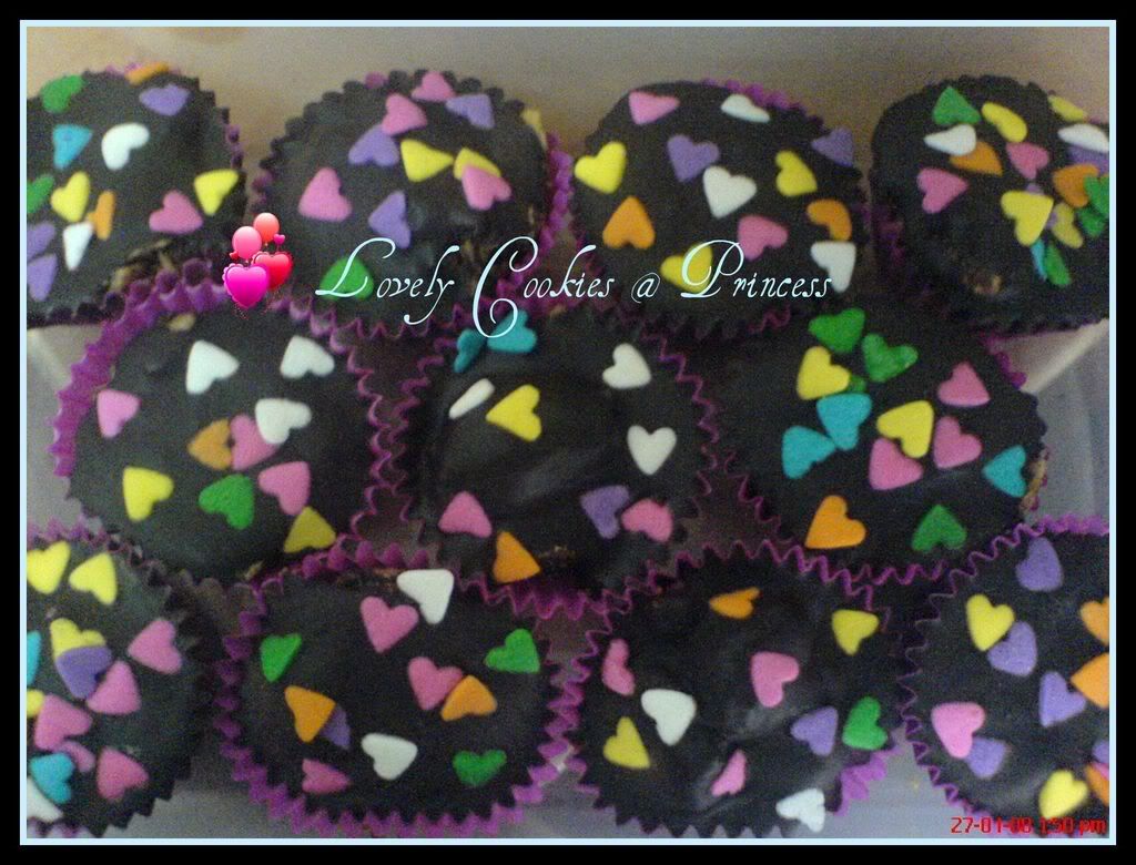 我也做了巧克力麦片饼......放在冰箱两天后...最后淋在TOP的巧克力变得很硬哦....是不是不要淋比较好呢..... |