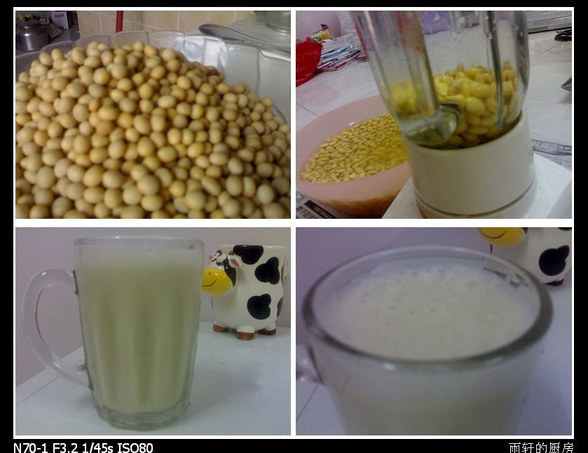 黄豆泡水浸隔夜。它会从原本的圆形便长形然后拿去blender.
