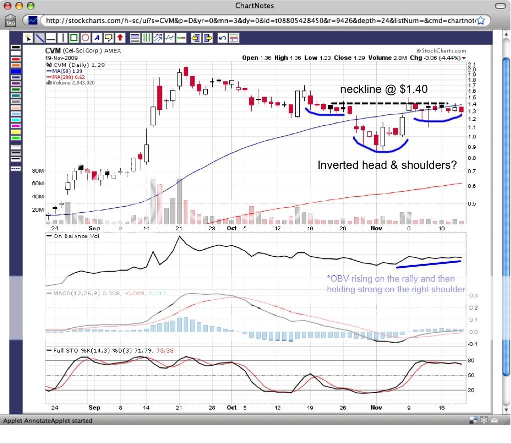 CEL-SCI Corp. (CVM) - CVM is trading back below the 10 day moving average so be cautious. CVM will get my attention when the stock breaks back above $1.50. |