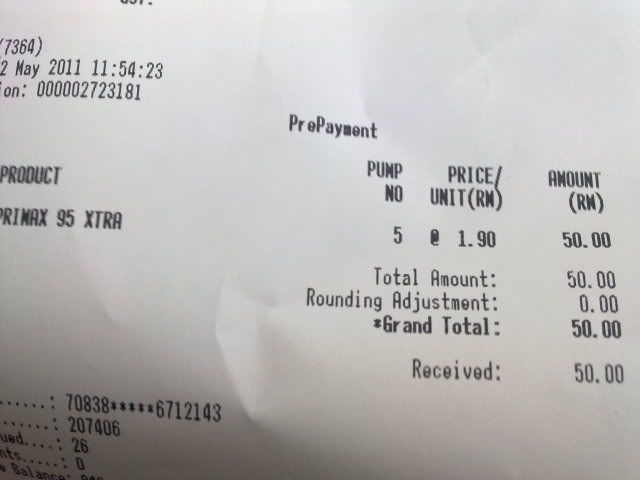 打了P牌的RON95,RM50,半缸
