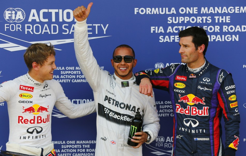 事实证明,梅赛德斯赛车仍然是排位赛中单圈速度最快的。尽管在第二次以及第三次练习赛中遭遇调校小问题,不过周六排位赛中的汉密尔顿重拾强势,力压红牛车队维泰尔、韦伯,顺理成章的再一次将杆位收入囊中。这是梅赛德斯车队的第15个杆位,同时也是汉密尔顿个人第29个杆位,追平了前辈方吉奥。