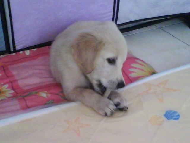 哈哈,幸好...我的黄金一直咬他的尾巴,是为什么呢? |