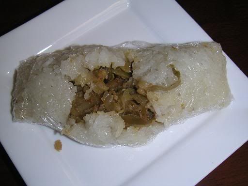 含料有榨菜,虾米,糯米,体积有点大,味道还不错.