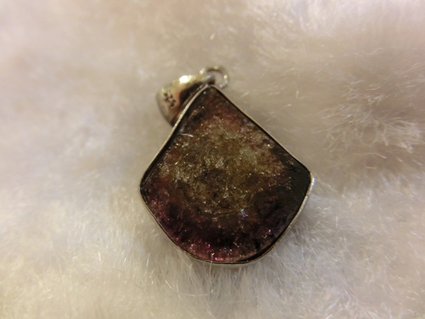 中心为粉红色、边缘绿色或反过来的电气石称为西瓜电石,由于颜色酷似西瓜的果肉和果皮,因此得名西瓜碧玺 。西瓜碧玺是在一颗晶石里面,长有内红、外蓝绿的特征,酷似