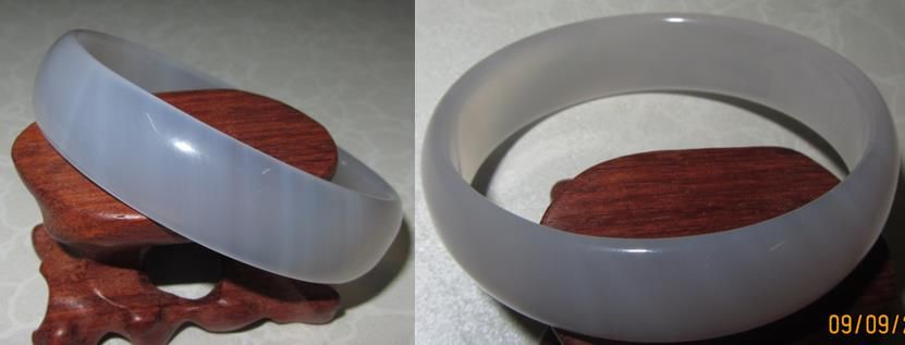 【手镯 : 精品 天然冰种白玛瑙 】 -------------------------------------------------------------- 规格 : 内径58mm ,面宽15mm , 厚约4.8mm 价格 : RM73 (未含邮費) Code : A0405