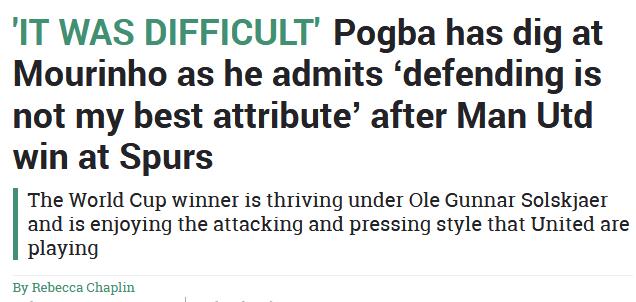 Opta将快攻定义为球队在本方半场拿球后由防转攻的尝试,曼联仅在比赛的前45分钟就有3次这样的尝试,这和穆里尼奥本赛季执教的前17场比赛中出现的次数一样多。事实上,英超没有哪支球队的反击次数比穆里尼奥的曼联要少,他们与卡迪夫城、哈德斯菲尔德并列最后一名,只有3次。而索尔斯克亚的曼联在过去两场比赛中就有7次,自从他接手曼联后,没有球队在这方面的次数比他们要多。他们已经从英超反击最糟糕的球队变成了最好的。