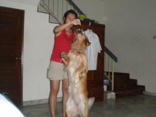 可憐.. 會不會是牠不是純種啊? 還是有其他問題呢? lucky以前的主人可能會是因為lucky有CHD的關係而不被受理, 聽朋友說牠長期被困在籠子里... 來咱們家時, 牠全身都是皮膚病, 全身的毛都是一撮撮, 骯骯髒髒, 瘦柴如骨的.. 全然看不出是黃金獵犬.. 人人都以為是全身是病的野狗..