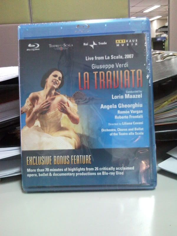 第一张就是令人难以置信的便宜的歌剧-茶花女了!!!US9.99,其他的歌剧至少都要US30++的,这是在斯卡拉歌剧院2007录制的现场版本,这种价格真的太令人难于置信了,而且有DTSMA和PCM stereo声道,是个50GB的双层BD。 有了Bluray,我们也不用去米兰看歌剧了,维尔第的茶花女是个平易近人的段子,曲调朗朗上口,搞不好你曾经在电视广告中听过的。