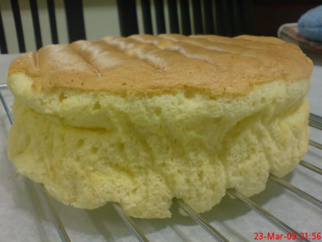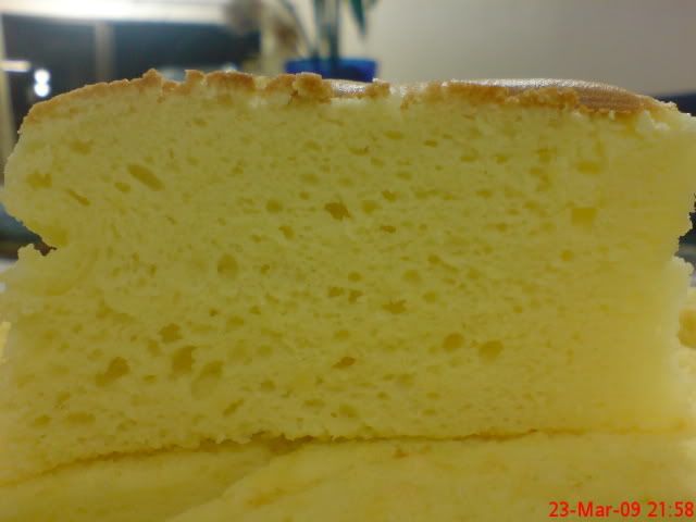做了这个不知道叫什么蛋糕,放了YOGURT,CHEDDAR CHEESE(2片),CREAM还加香橙汁,分蛋发做的,应该吃不死人卦!它的味道分层的,刚咬下去时,好像有ORANGE的味道,再来是CHEESE的咸味,最后是CREAM的滑润感,满特别的,朋友吃了都不晓得是什么蛋糕,问我,我也不知道.