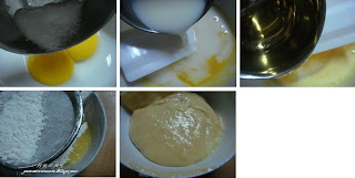 蛋白4粒,细糖40g ,塔塔粉1/2茶匙 ,面粉50g ,vanilla香精1茶匙