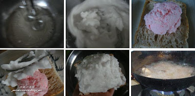 4。然后土司朝下,蛋白朝上的下锅油炸