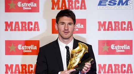 巴萨的当家球星梅西将在11月20日被授予上赛季欧洲足坛金靴奖奖杯。欧洲金靴奖是由包括《踢球者》、《法兰克福汇报》、《马卡报》以及《球报》等在内的多家全球顶级体育媒体组成的欧洲体育媒体联盟设立。上赛季欧洲金靴奖得主是巴萨的阿根廷巨星梅西,后者继2009/10赛季以及2011/12赛季之后,第三次获此殊荣。据悉,颁奖典礼将于20日下午1点,在巴塞罗那的老达姆啤酒工厂举行。