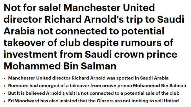据每日镜报,邮报等多家英国媒体消息,曼联高层的沙特行与沙特王室有意收购曼联一事并无关系。