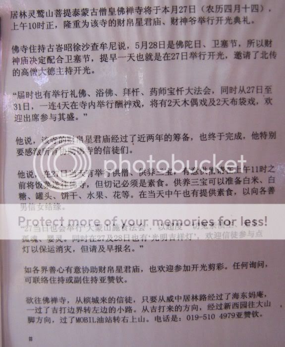 | 经过两年的筹备,居林佛寺内的财神爷庙, 也终于要举行开光典礼了,这次是配合卫塞节,