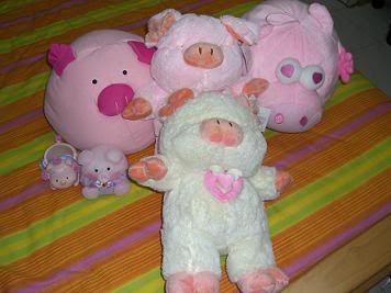 这六只猪猪大大小小都是hubby仔买的,我的车还有两只,总共有八只,不懂拿去买有没有人要,它们霸了我的床。。。