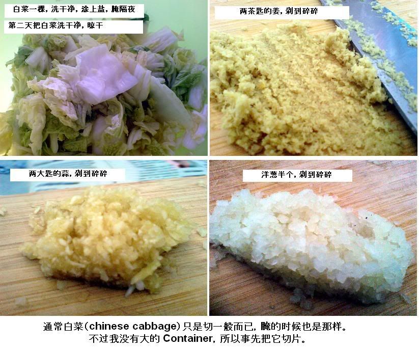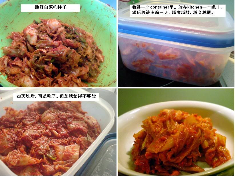 前几天我兴致勃勃的做了我生平第一个韩国泡菜。因为我们两个都很喜欢吃,可是外面卖的又很贵。小小一盒就六块钱。那时FiFi来的时候有教过我,而且很容易的,所以我就自己做。