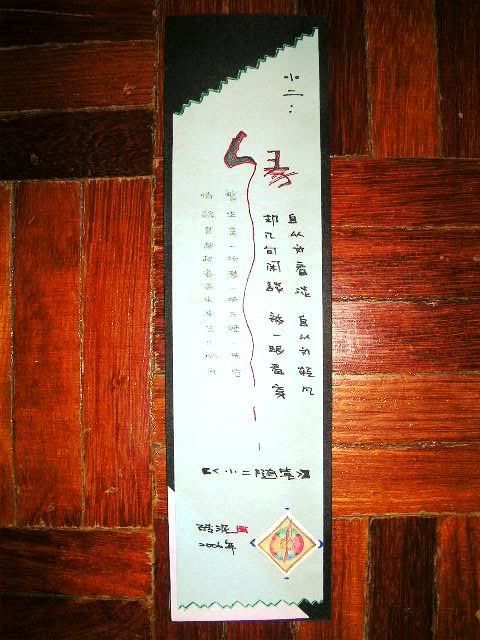 呵呵。。。刚去寄了小鱼的书签,跟阿如的书签可是同一系列的,以后可以用来跟阿如相认了。两张各有特色,一张温馨夺目,另一张则文雅朴素,希望你们喜欢就好! |