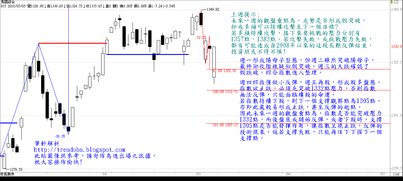 這個1332點應該是取上週四(5月6日)的閉市水平,我在想是不是應該取當天的1338的高點?